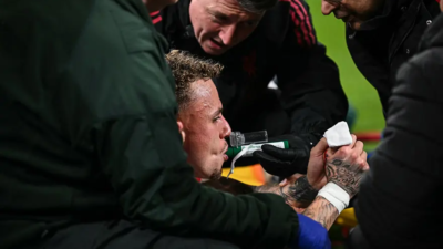 Elini tutarak yere yığılan Hollandalı futbolcunun kanaması olduğu görülürken, her iki takımın teknik heyeti hemen bölgeye doğru koştu.
